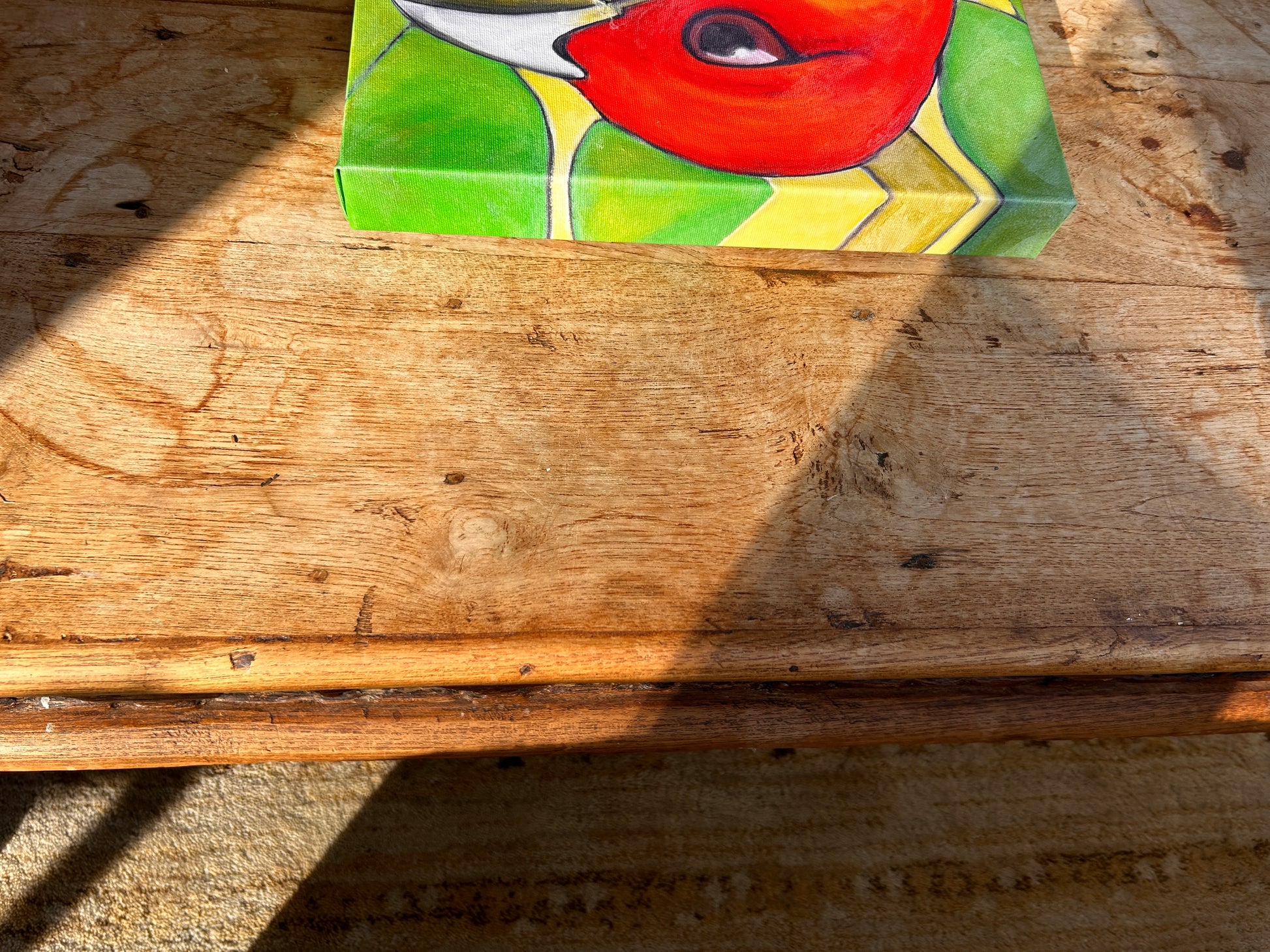 This is a reproduction of an original oil stick paintings of a TANAGER IN LEAVES 2 by Morgan Fisher.